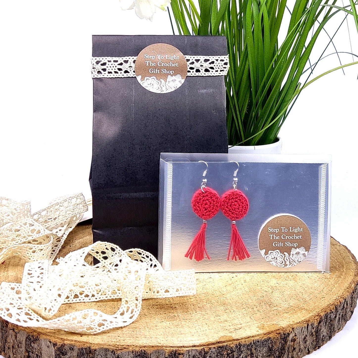 Add a fresh, happy touch to your look with these charming handmade crochet drop earrings! Featuring delicate micro-crocheted motifs and sparkling glass beads, these earrings are perfect for adding a feminine, bohemian flair to your spring and summer style—or any season!