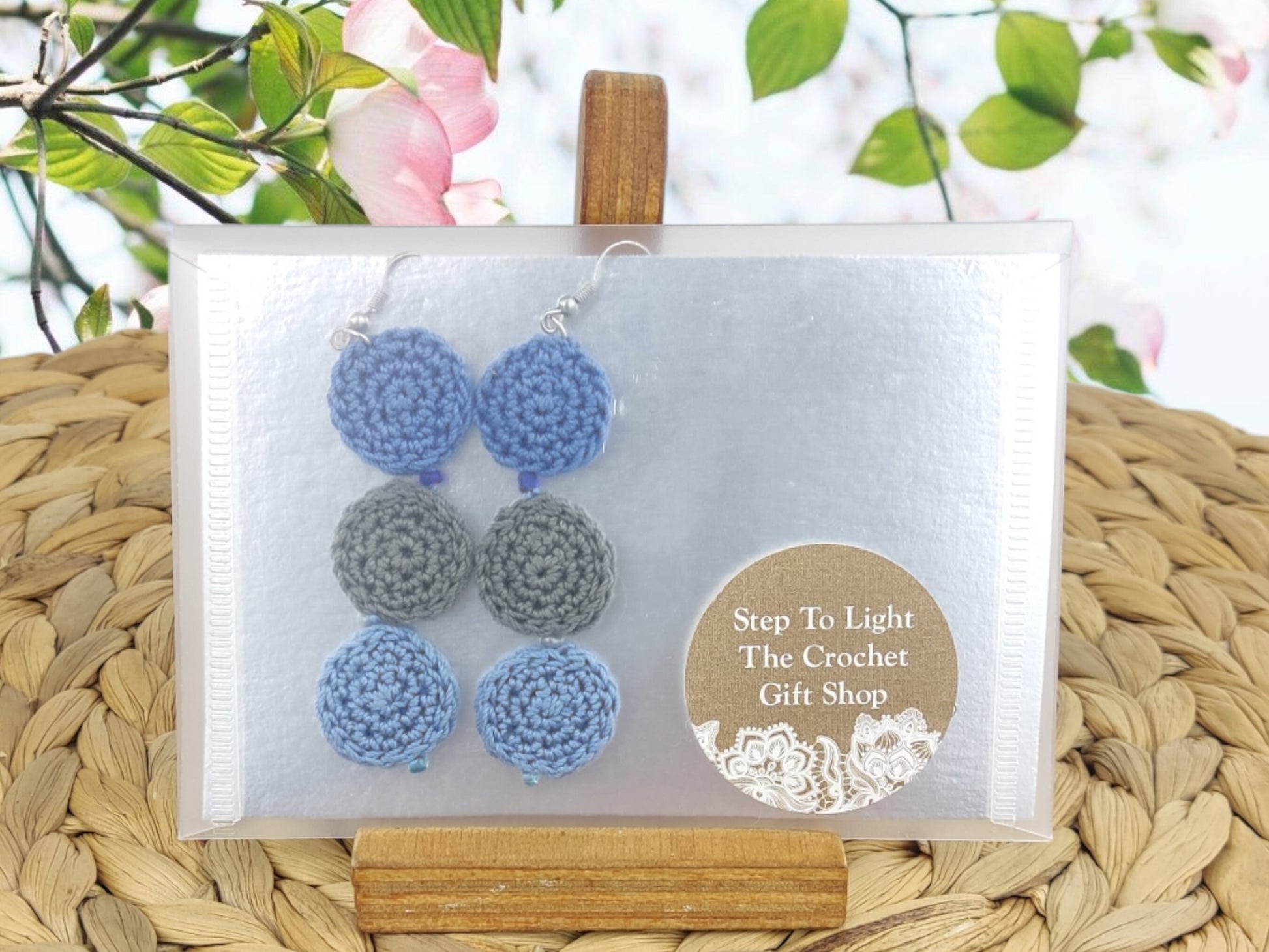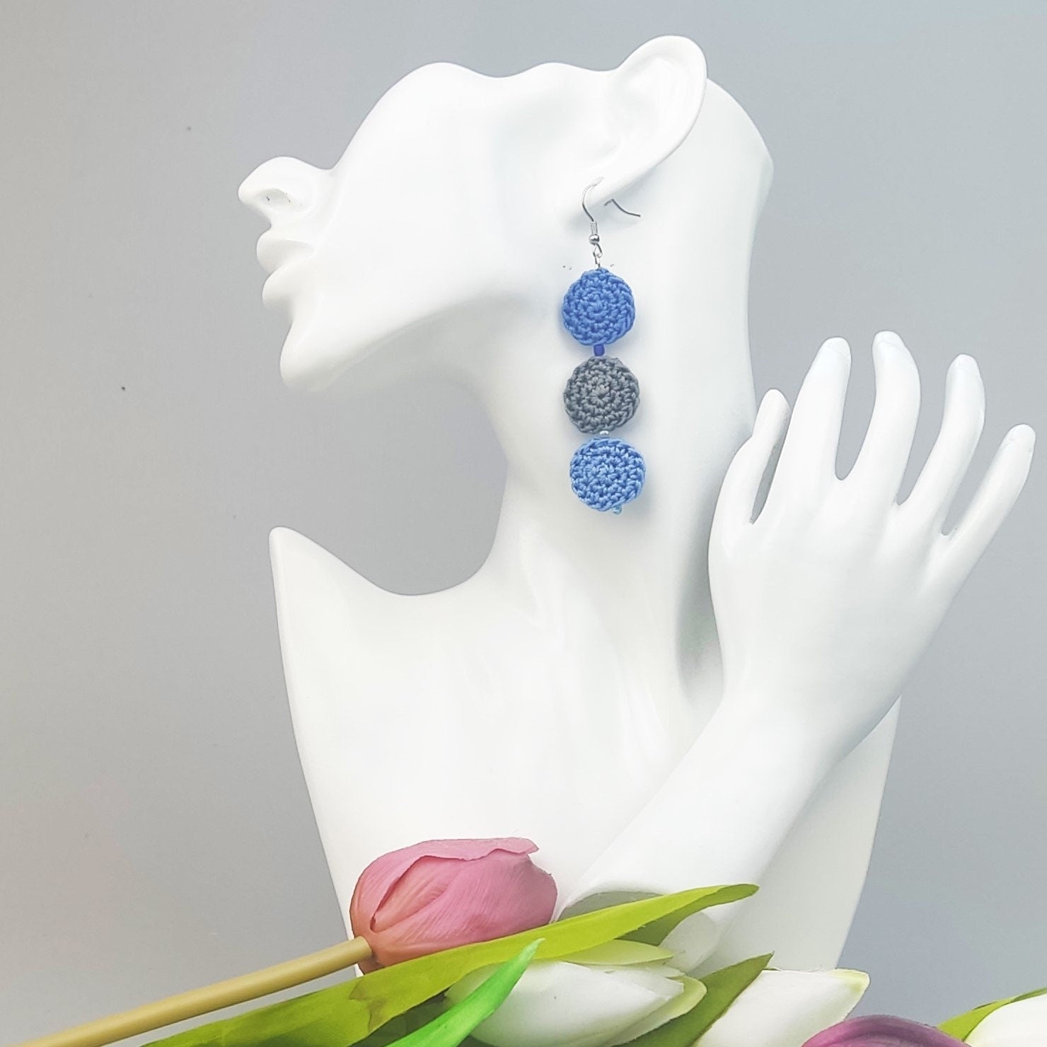 Blue Crochet Dangle Earrings: Boho Statement Jewelry