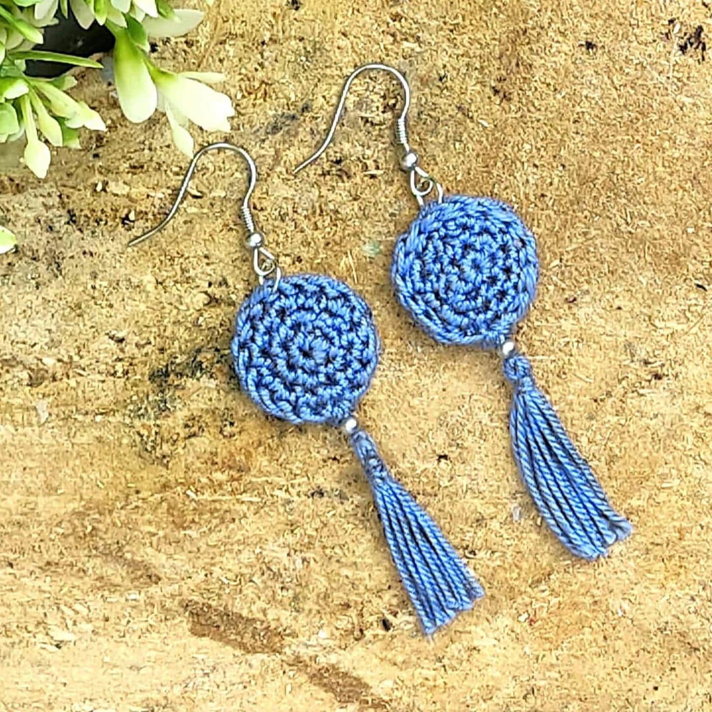 Blue Crochet Tassel Earrings:Elegant Boho Jewelry Gift