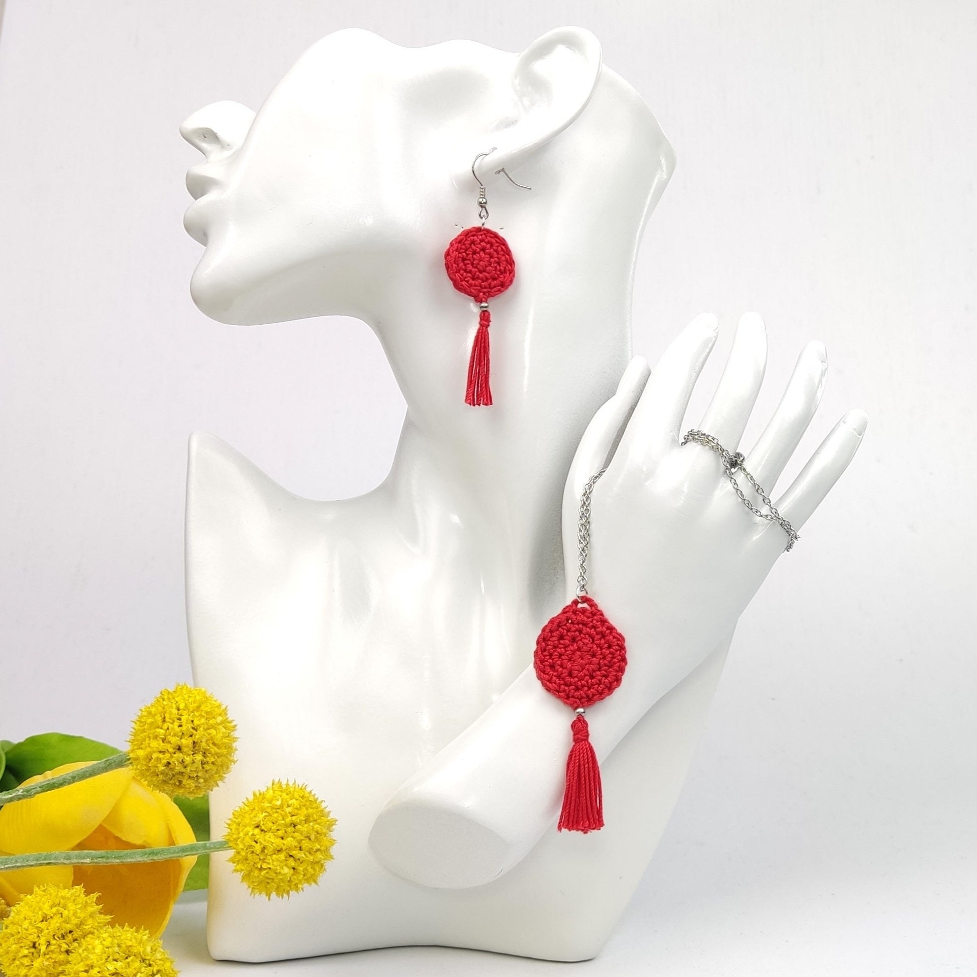 Red Crochet Tassel Earrings: Elegant Boho Jewelry Gift