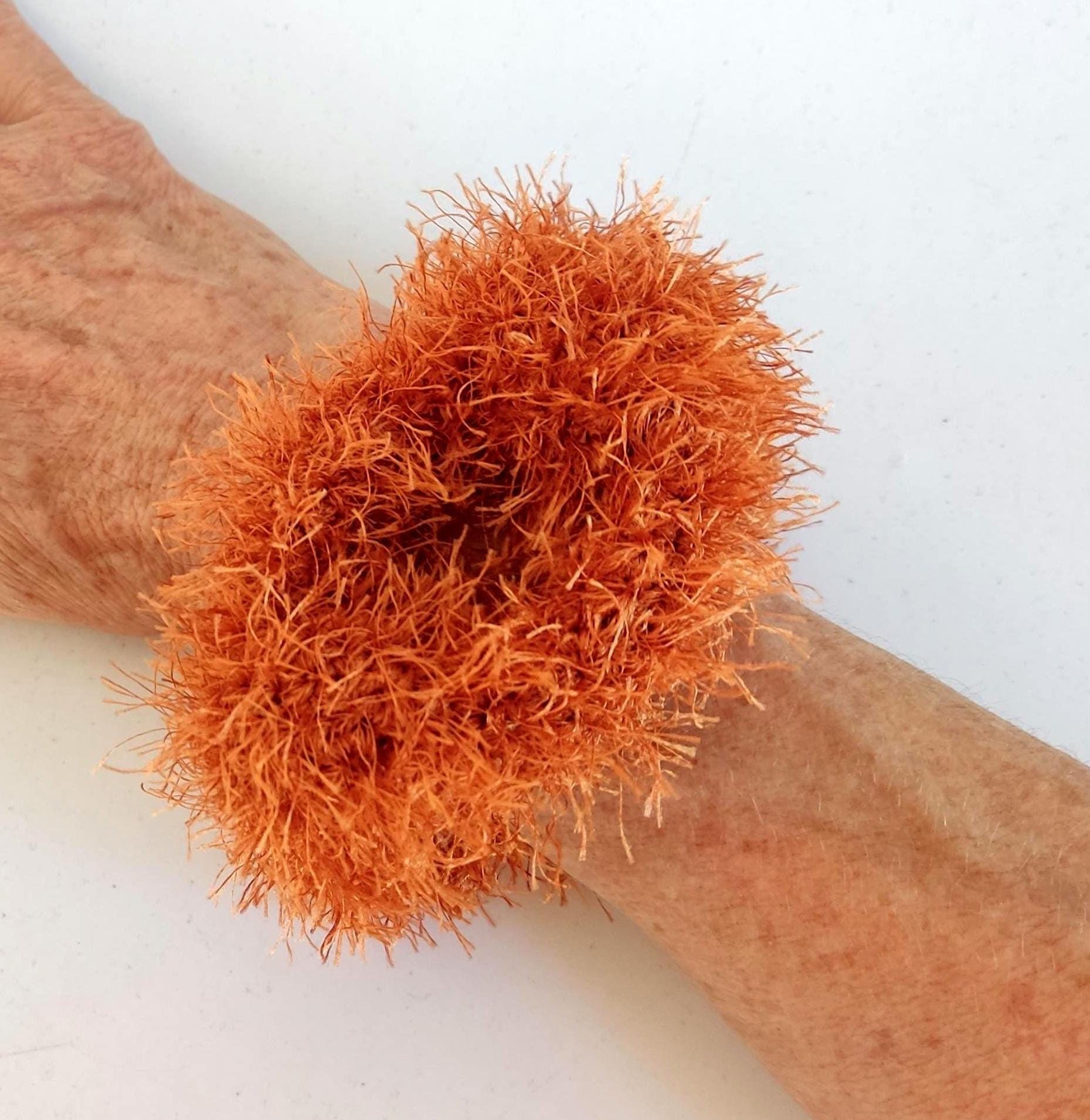 Chunky Burnt Orange Faux Fur Crochet Bracelet