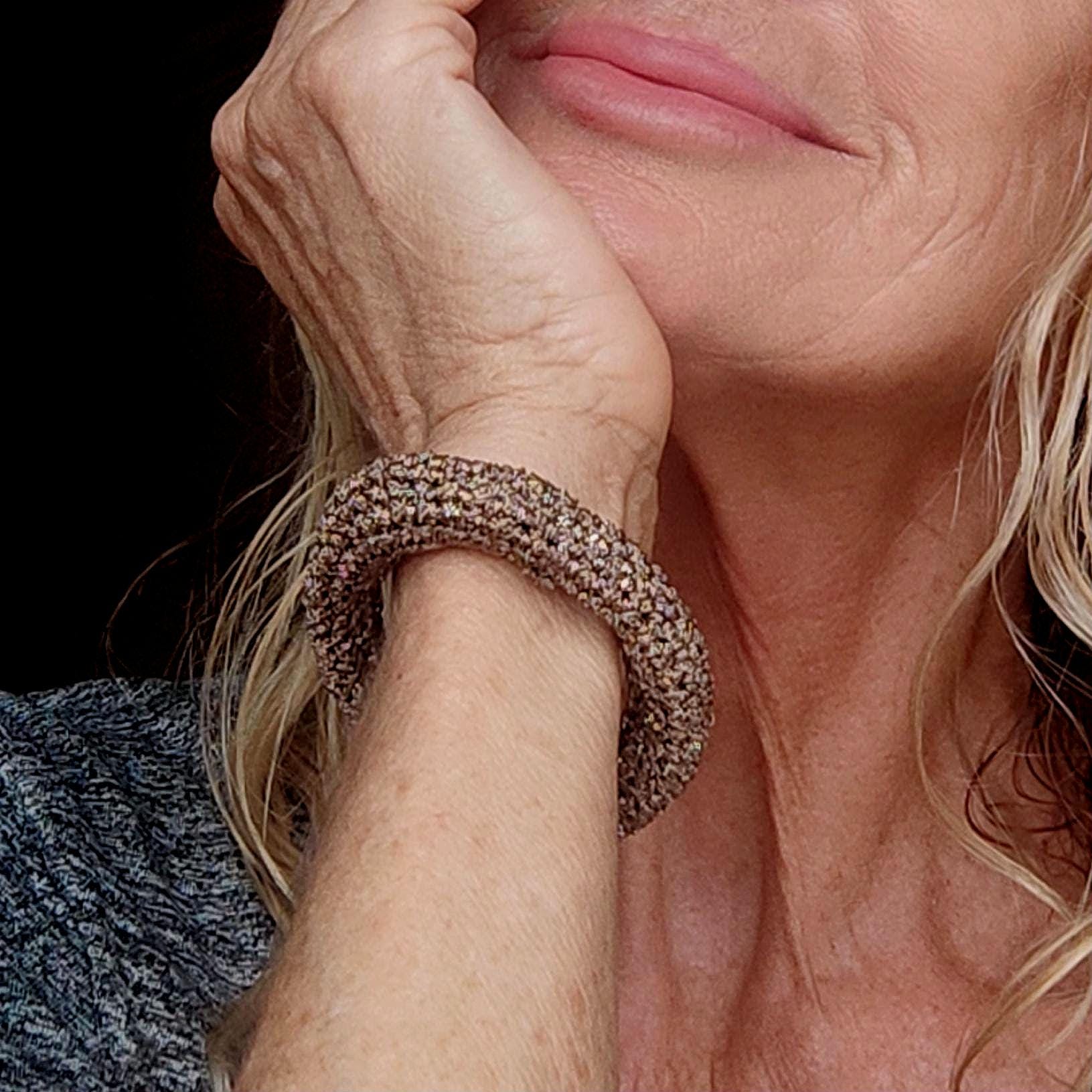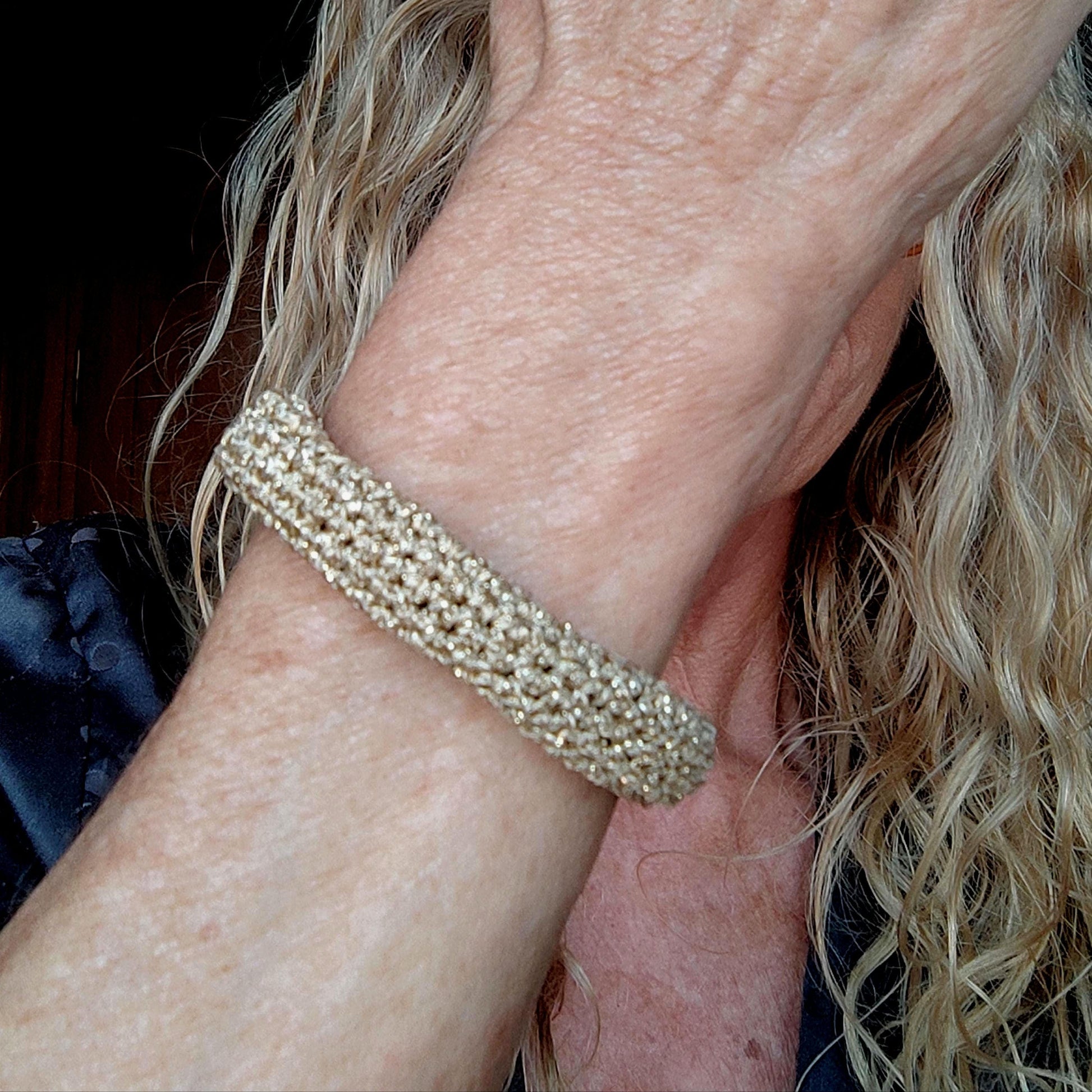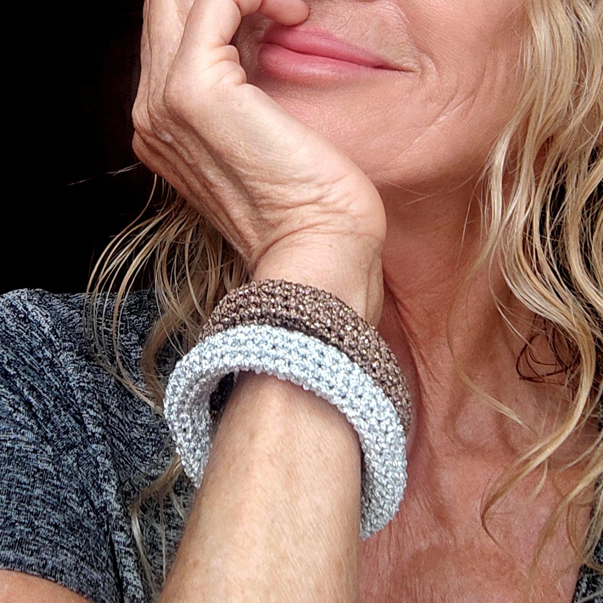 Chunky Crochet Bangle Bracelet Set - Gold Silver Bronze Metallic Yarn - Stackable Statement Jewelry