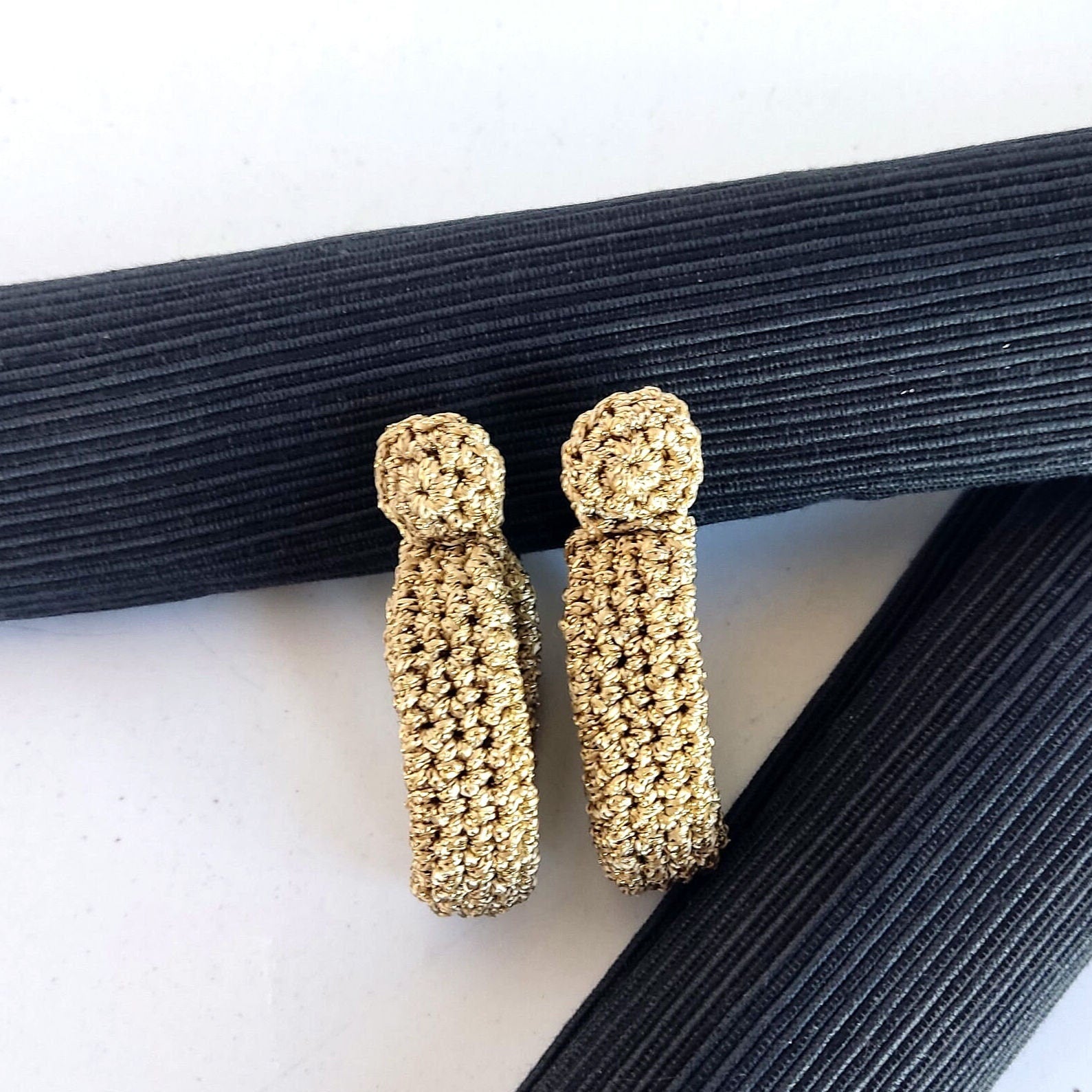 Chunky Crochet Hoop Earrings: Golden Yarn, Gold Plated Studs