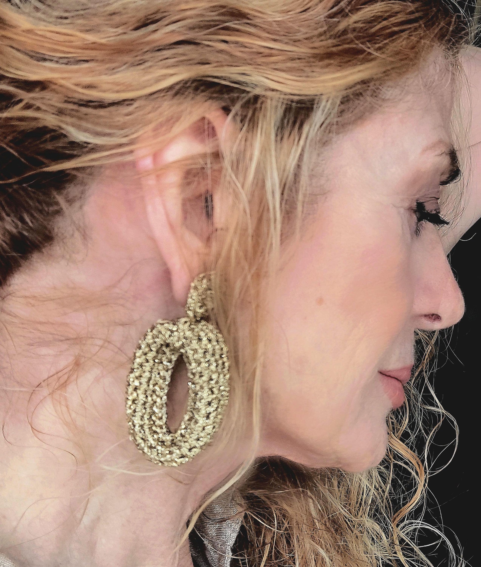 Make a glamorous statement with these stunning chunky crochet hoop earrings in shimmering golden metallic yarn! These luxurious earrings add instant elegance and sparkle to any outfit, perfect for special occasions or elevating your everyday style.