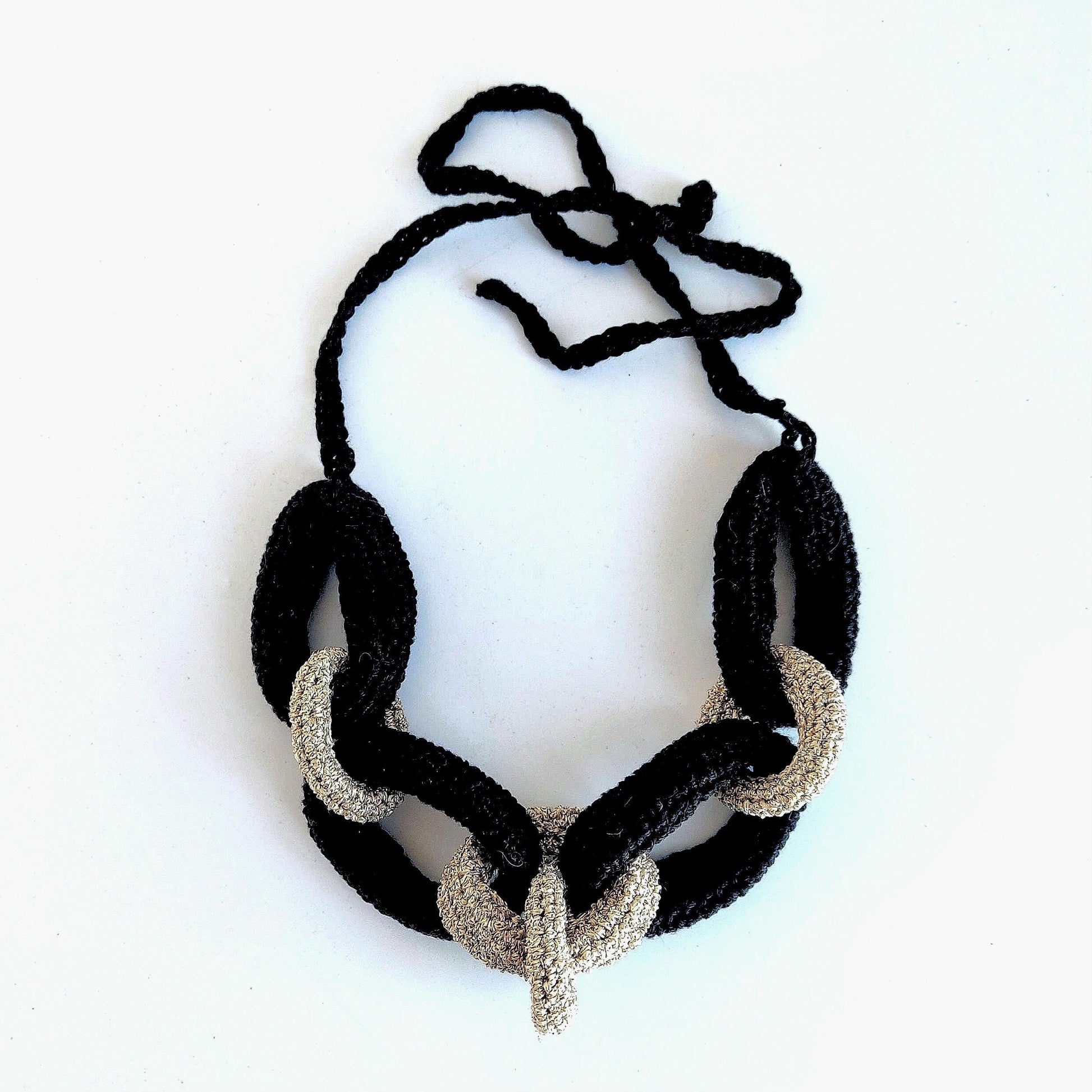 Style It: Pair this black and gold masterpiece with a little black dress for evening elegance, or wear it with a silk blouse and tailored pants for sophisticated daytime glamour. This chunky crochet necklace transforms any outfit into a statement of refined style.