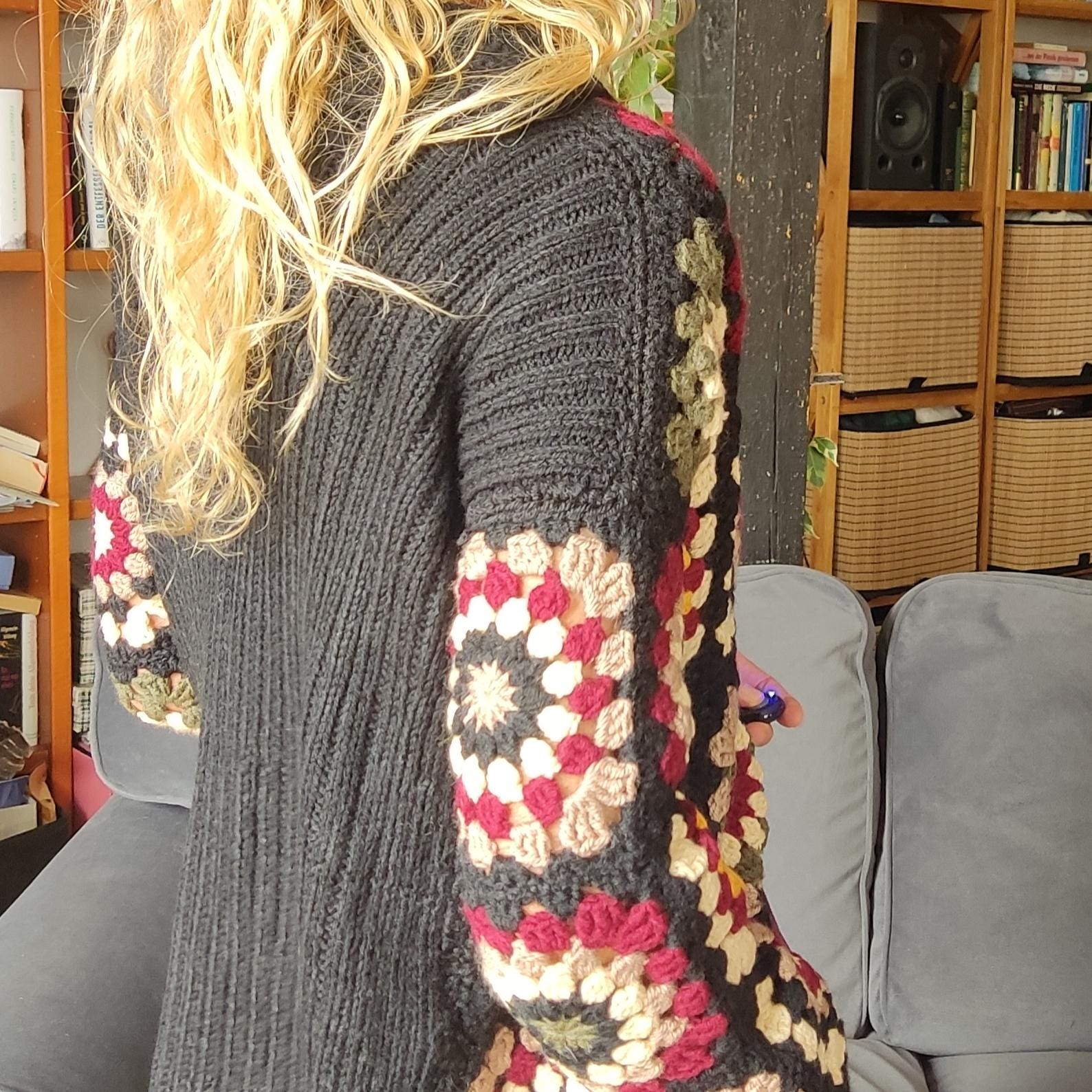 Add a pop of color to your wardrobe with this stunning multicoloured granny square crochet cardigan. This handmade boho jacket is a true statement piece that celebrates traditional crochet artistry: