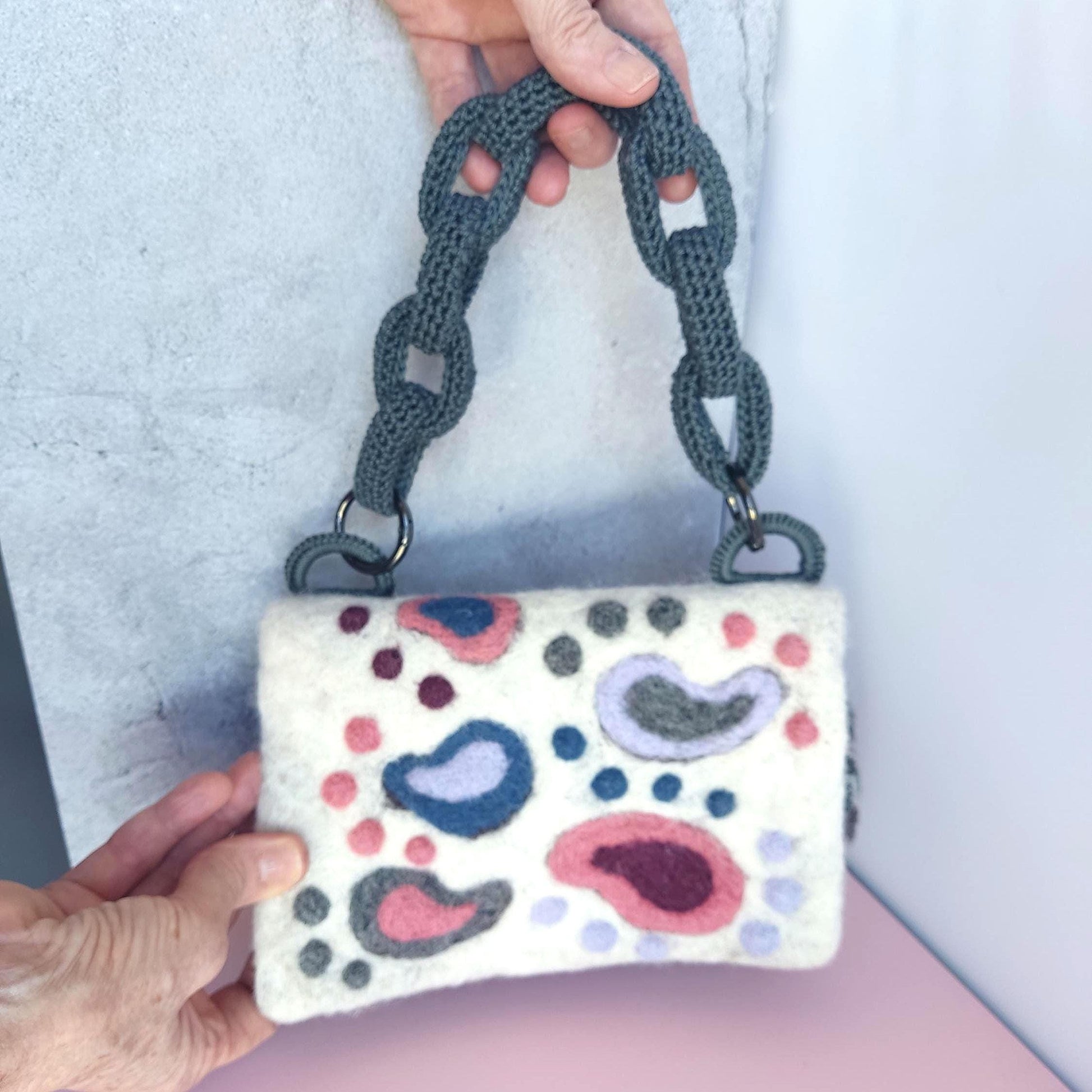 Felted Wool Shoulder Bag - Handmade Purse with Crochet Handle