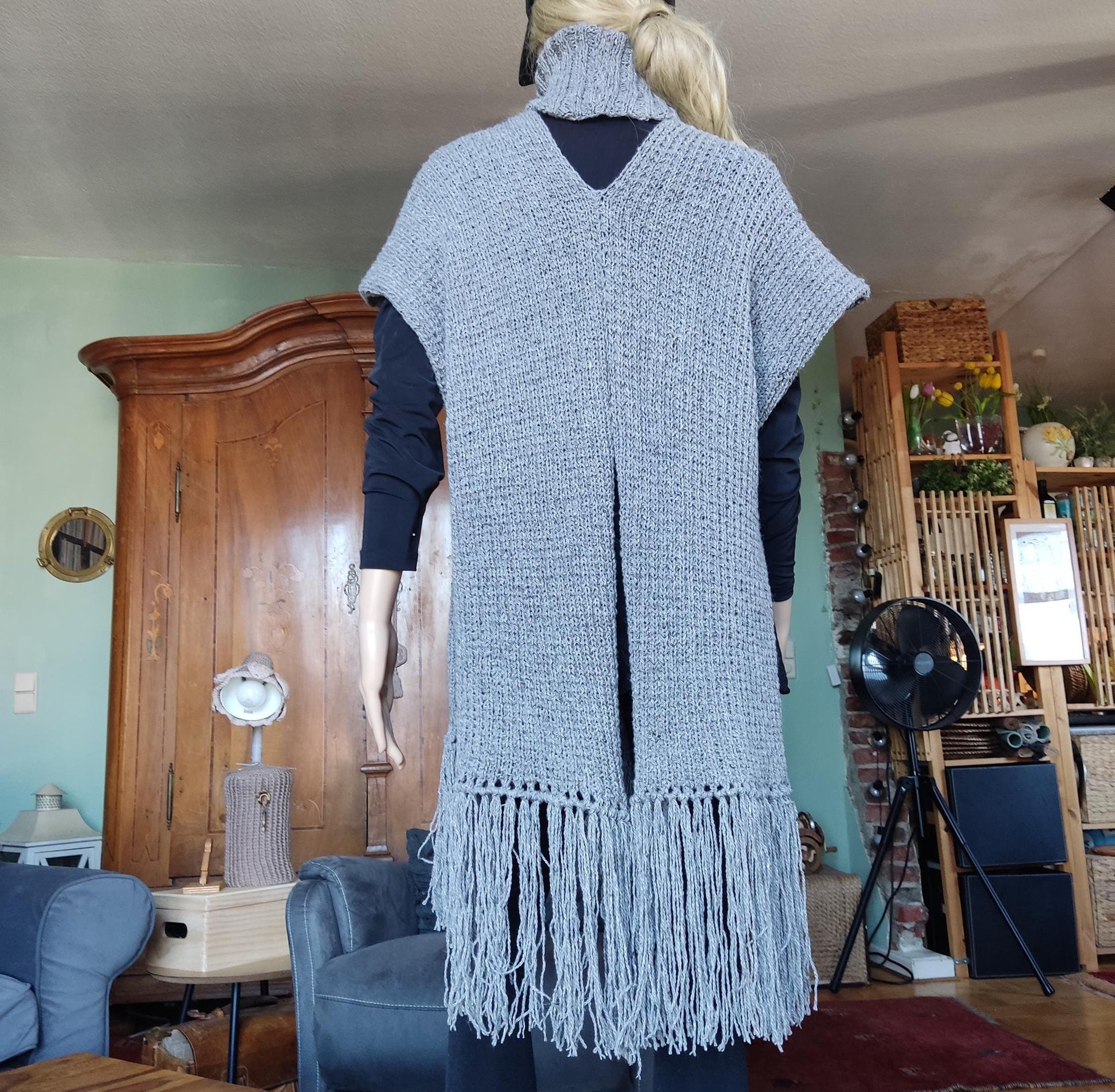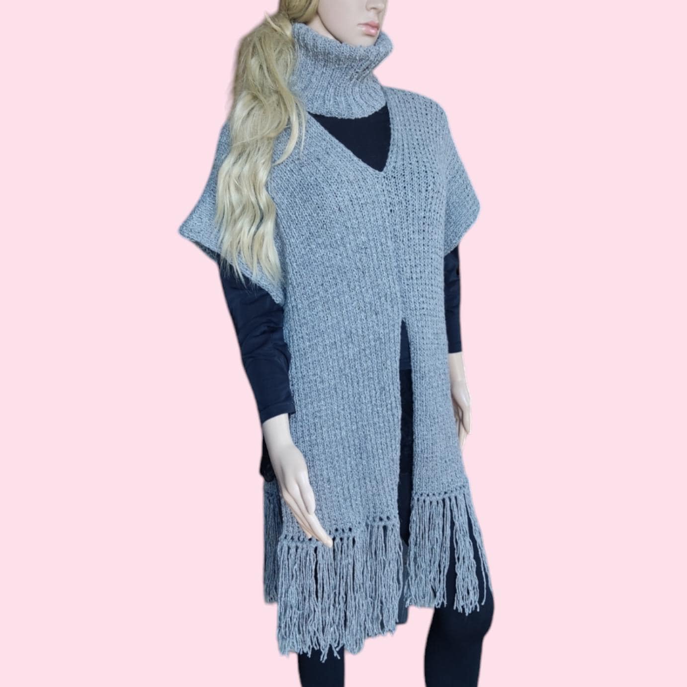 Stay warm and stylish with this sophisticated gray merino wool poncho. Handknitted with premium merino wool, this timeless vest is a wardrobe essential for cooler seasons: