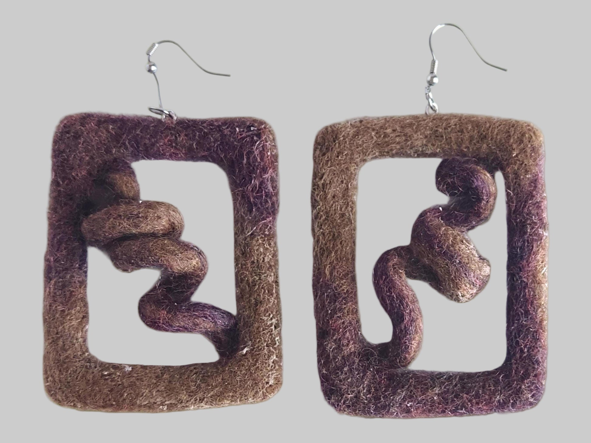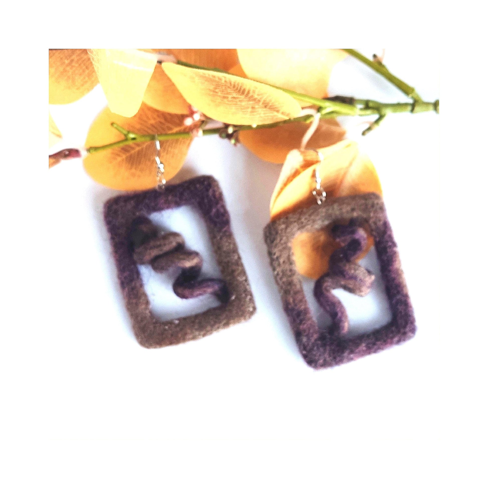 These stunning handmade felt dangle earrings are true wearable art! Crafted from premium merino wool in rich brown tones with striking geometric shapes, these statement earrings add artistic flair and sophistication to any outfit.