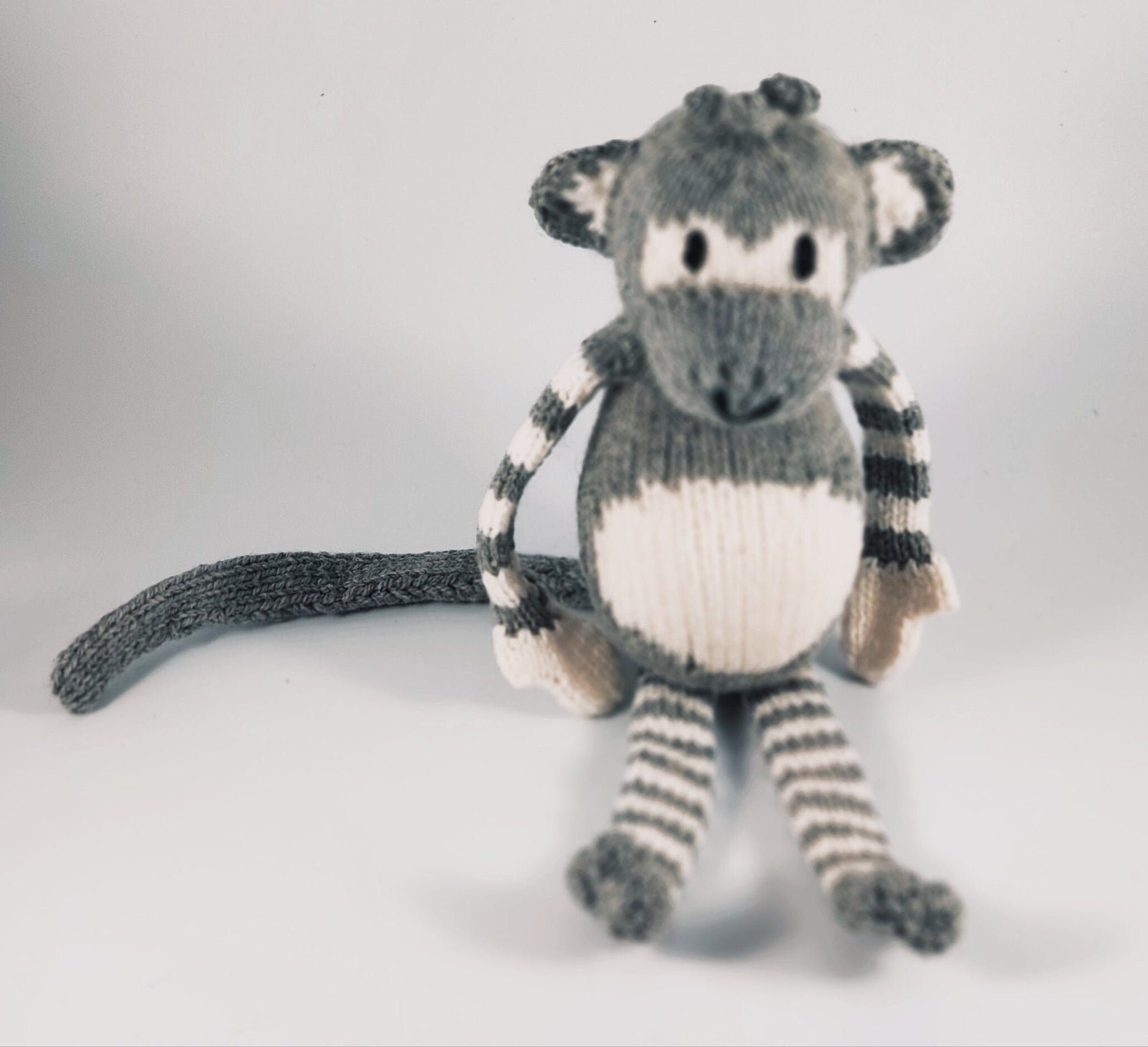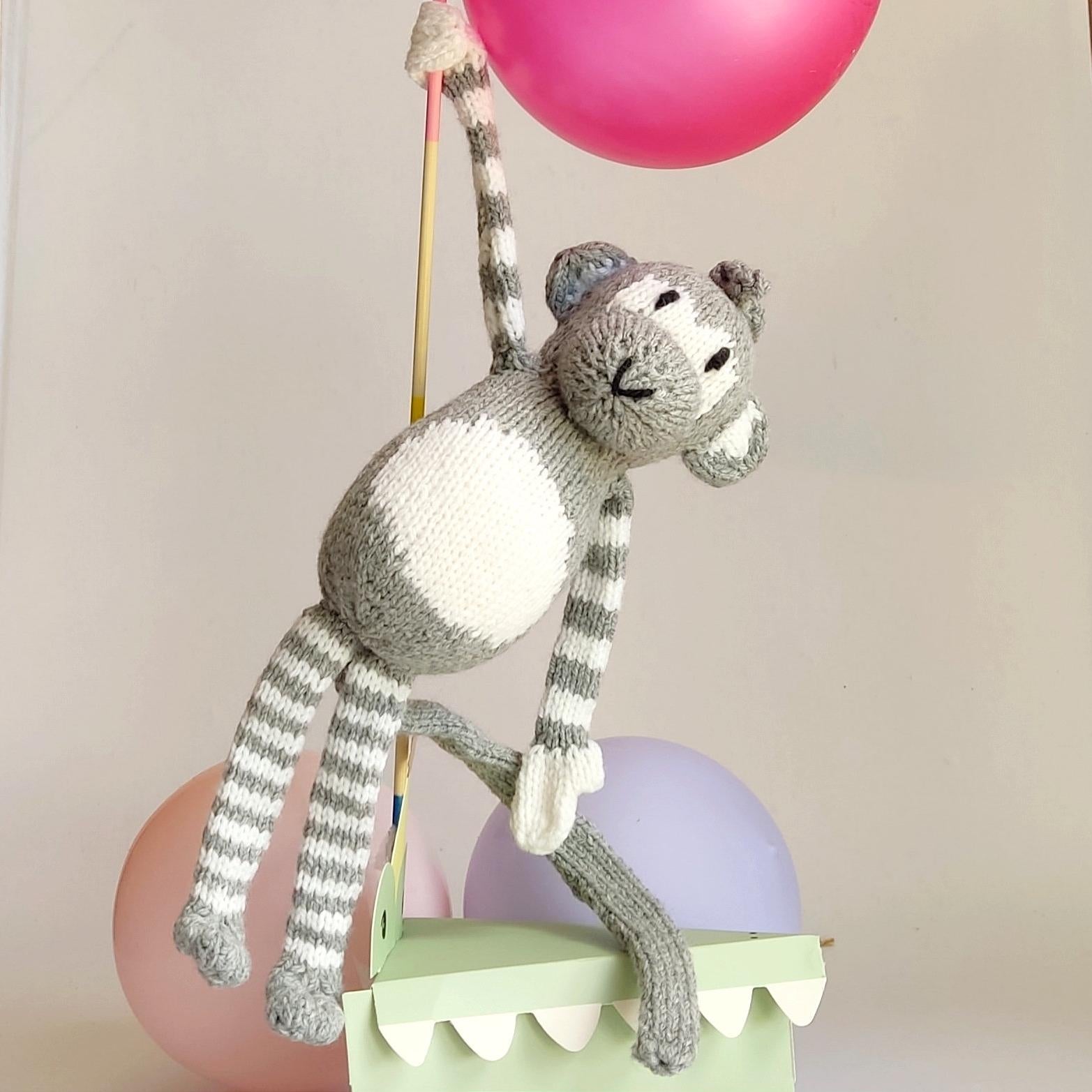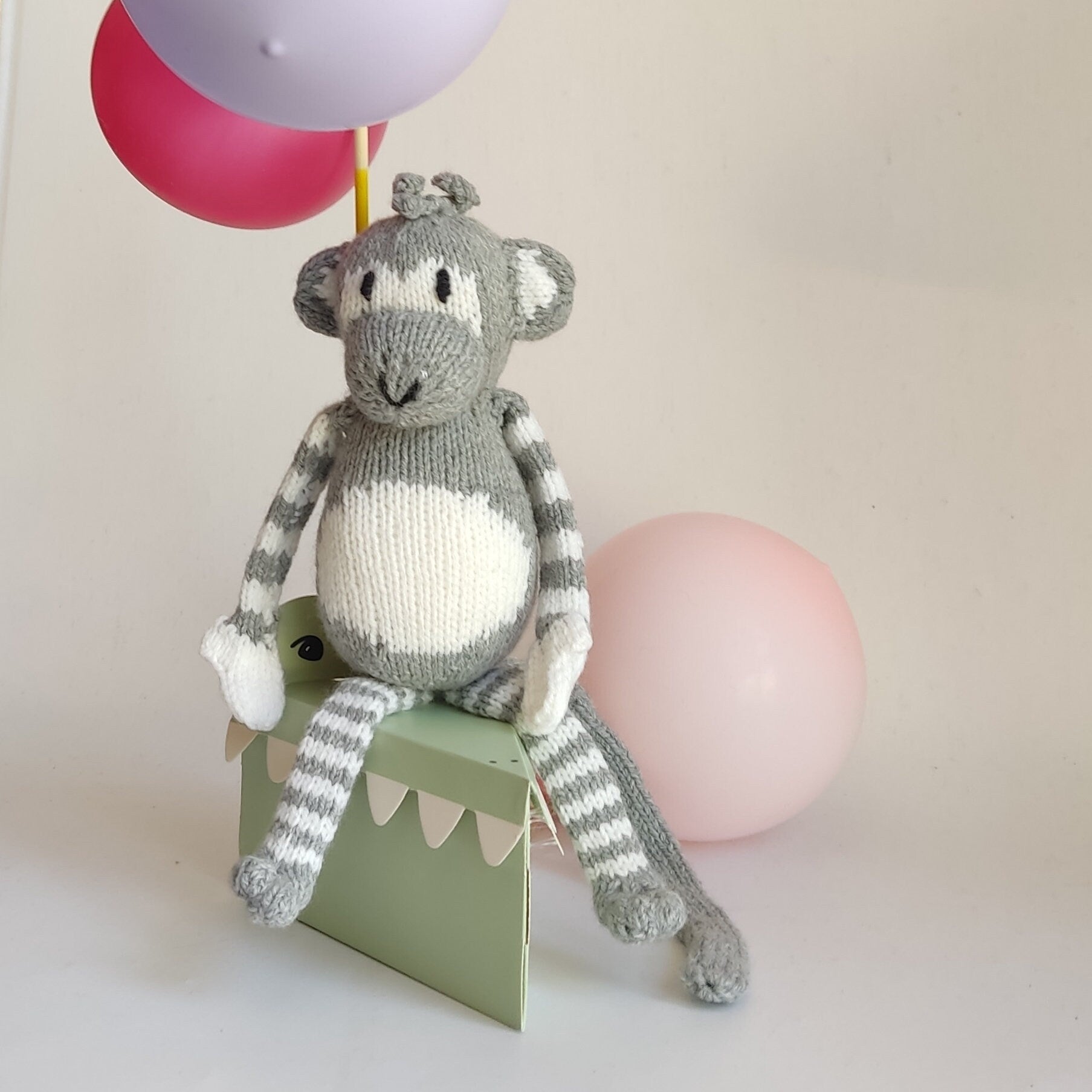 Knitted and Crochet Plushy Monkey , Stuffed Animal Monkey Gray White,30 cm Monkey Soft Toy, Crochet Knitted Animals,Handmade Baby Gift,