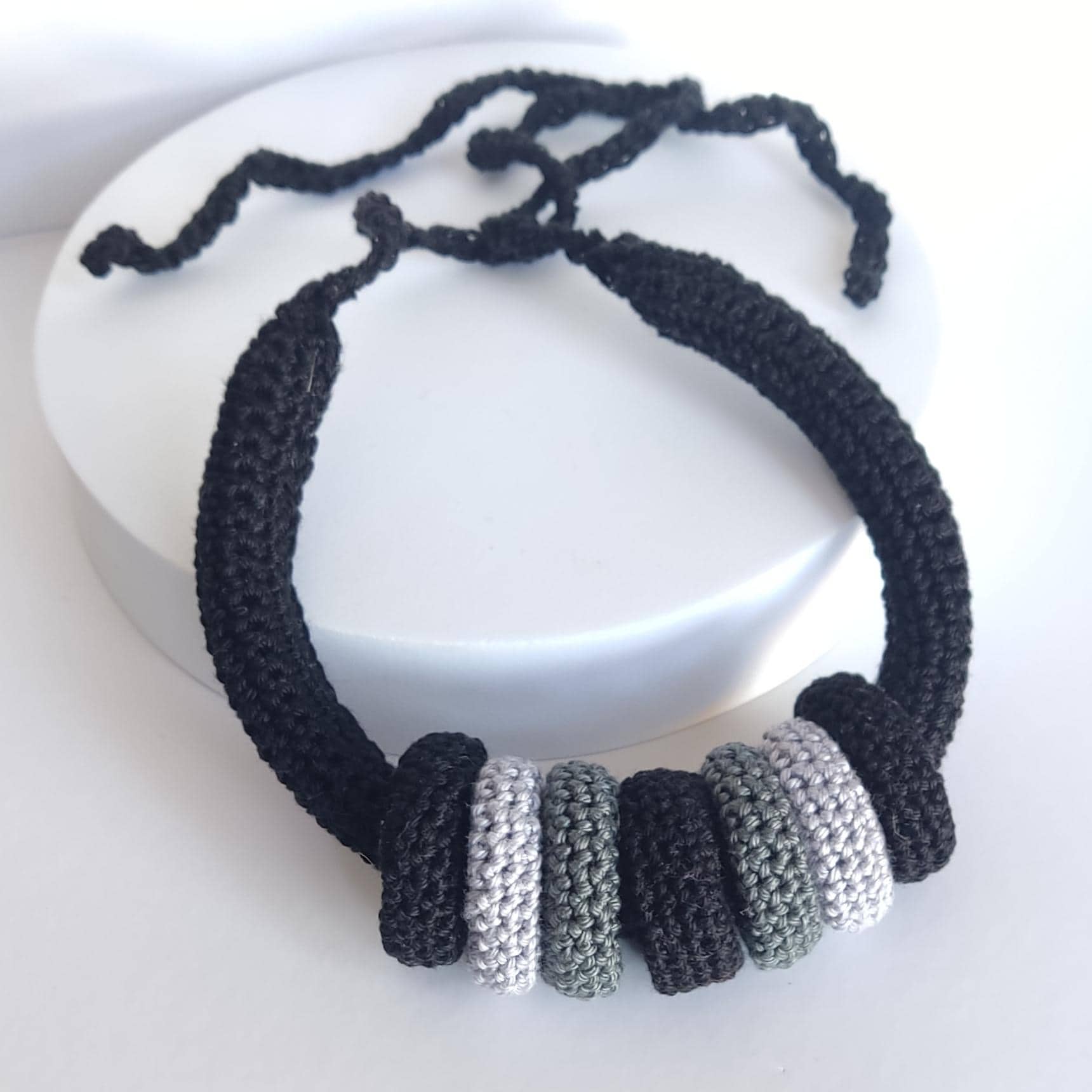 Multiway Crochet Statement Necklace: Curved Necklace ,Chunky Rings, Adjustable Length