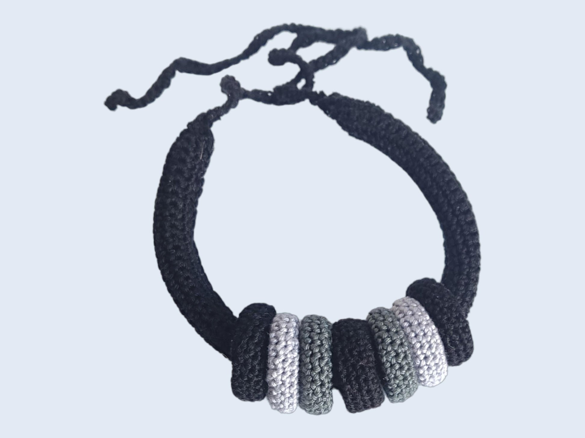 Multiway Crochet Statement Necklace - Curved Necklace & Chunky Rings, Adjustable
