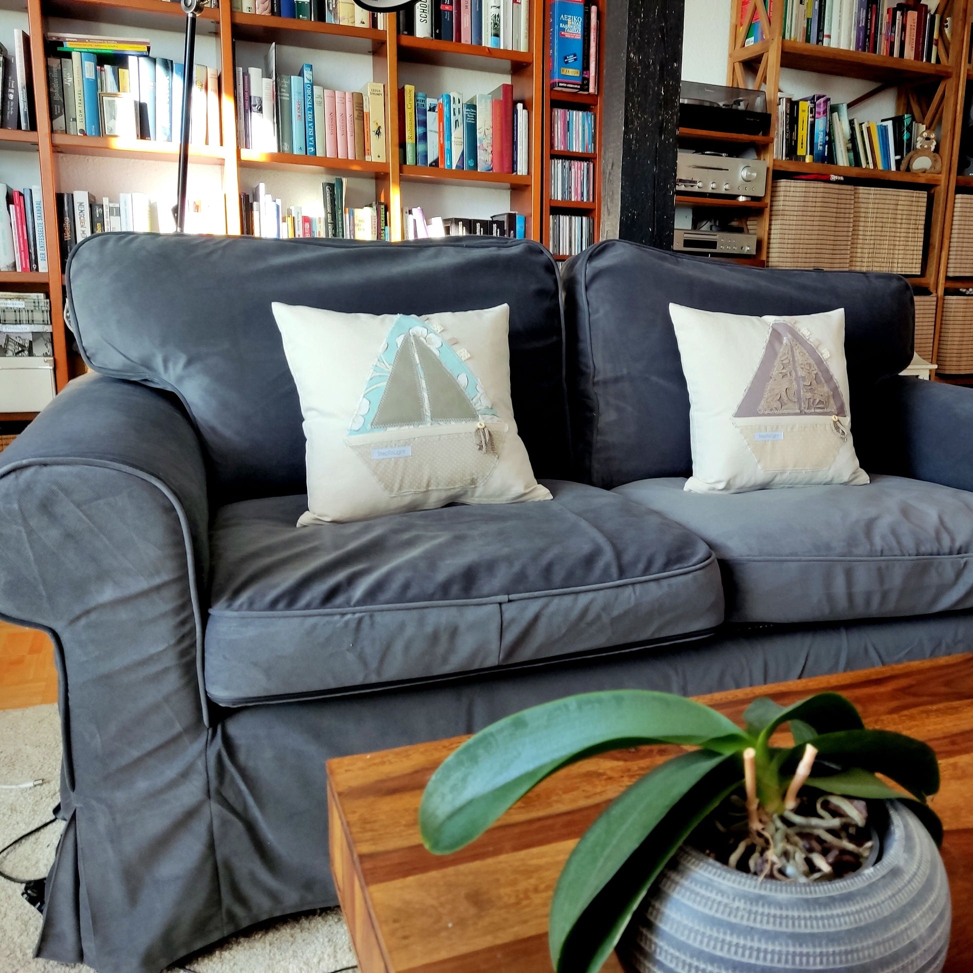 Transform your living space into a coastal haven with this charming set of handmade nautical pillow covers. Featuring adorable patchwork sailing boat designs in maritime colors, these decorative cushion covers bring seaside charm and sailing adventure to any room.