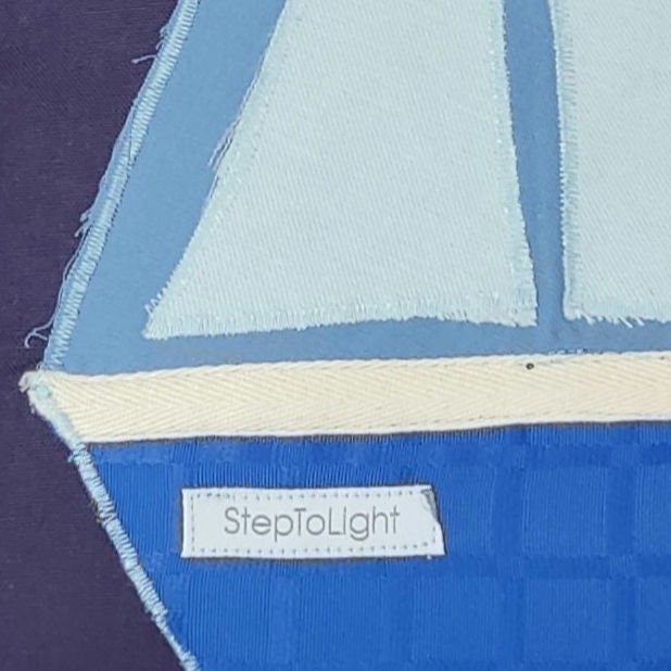 - Charming patchwork sailing boat designs in navy blue nautical colors