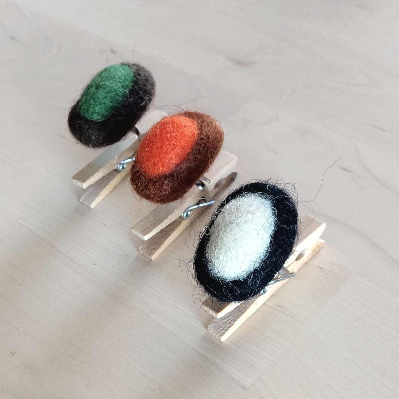 - Set of 3 coordinating felt rings in earthy, neutral tones